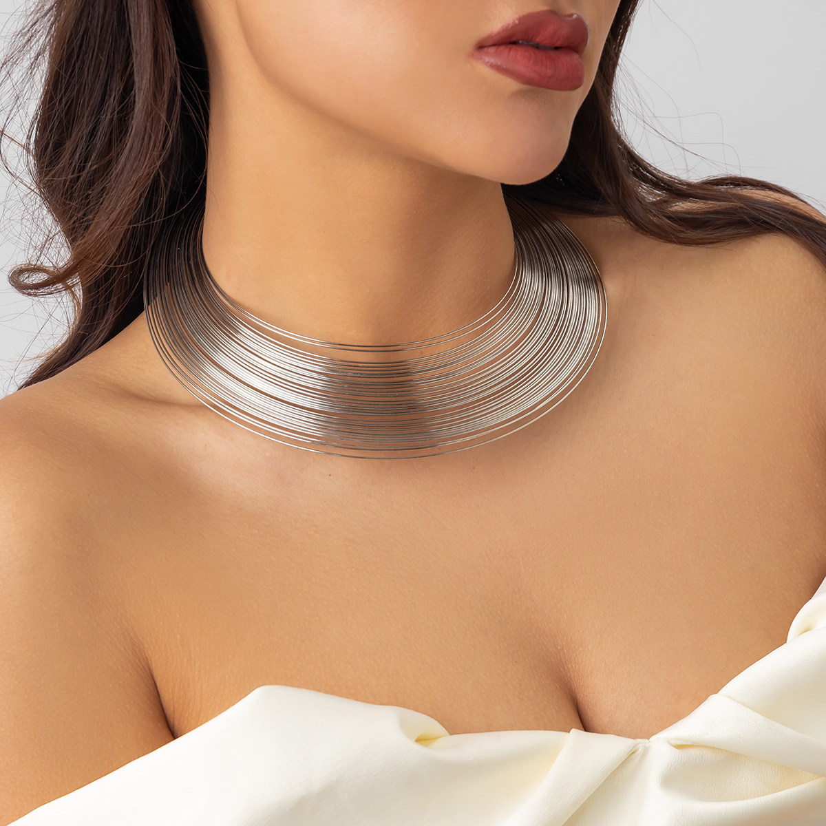 IngeSight.Z Exaggerated Multilayer Metal Wire Torques Collar Choker Necklaces for Women Punk Statement Indian Party Jewelry silver color – Sumsfashion